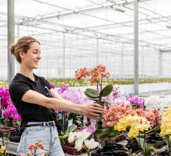 Achter de schermen werken onze experts elke dag aan het mooiste assortiment! Onze assortimentsmanager Sabine, samen met Naomi en Julia, speurt naar de meest bijzondere orchideeënrassen voor de abonnementen. Ook houdt Sabine toezicht op de meer dan 101 verschillende variëteiten in onze kwekerij. Ze selecteert, test en beoordeelt nieuwe soorten om te bepalen of ze een plek verdienen in het exclusieve Kolibri assortiment.