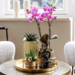 Het thema chic alleen maar voor feesten? Nee hoor, met de complete plantenset Hotel Chic kan het elke dag chic zijn. Een mooie set die past bij elegante, stoere en chique interieurs. In de set vind je de Face-2-Face pot en de Groove potten voor een speelse twist, Monkey long tail en gouden dienblad. Bij de set staat de paarse Morelia orchidee samen met Succulenten in de potten. De Phalaenopsis orchidee geeft 2 tot 3 takken.