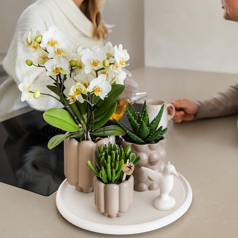 Verkrijgbaar in drie natuurlijke kleuren en twee formaten (6 cm en 9 cm), is de Cotton pot ideaal voor kleine Kolibri Greens of elegante Kolibri Orchids. De matte afwerking en ronde vormen maken het een subtiel, maar karaktervol accent in elke ruimte.
