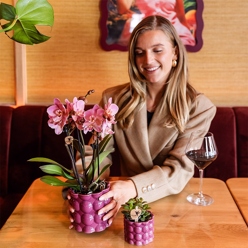 Breng kleur, glans en chic-vibes in huis met de Kolibri Home | Cotton Shine pot. Deze pot, onderdeel van onze Hotel Chic collectie, valt direct op door zijn speelse bolreliëf en hoogglanzende afwerking. Het retro ontwerp geeft elke ruimte een vrolijke, warme uitstraling en laat jouw planten stralen als nooit tevoren.