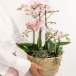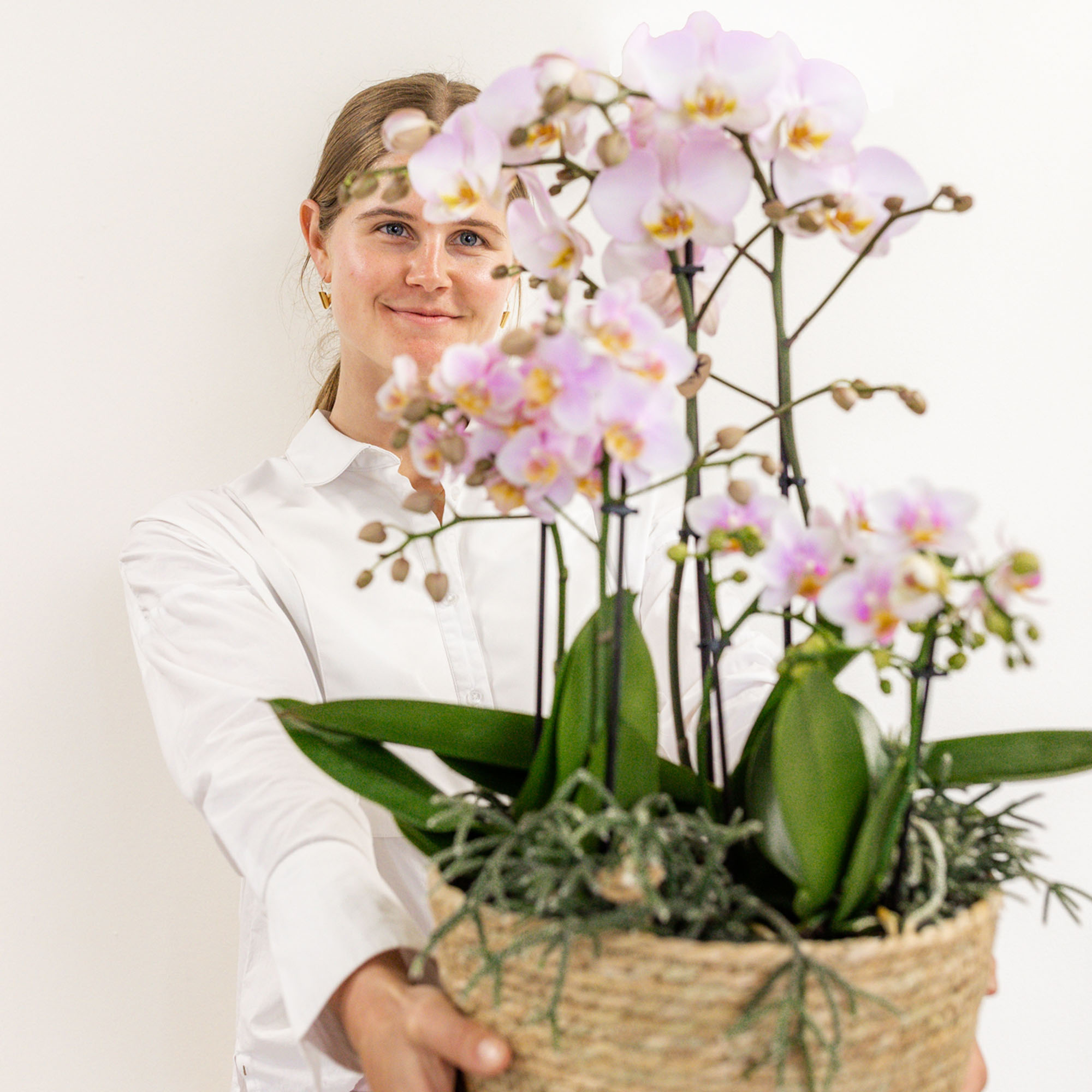 Een boeket met uitmuntende bloemen, waarvan je maandenlang kunt genieten. Omarm het mooie van natuur met jouw Field Bouquet, voorzien van handige inlay met waterreservoir. Dit bouquet bestaat uit drie Kolibri Orchids met dezelfde kleur uit verschillende families met potmaat 12 en 9 centimeter.