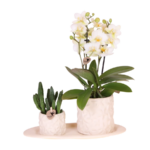 *De orchidee wordt geleverd met 2 of 3 stevige takken, afhankelijk van de actuele beschikbaarheid. Omdat we met levende producten werken, kunnen er kleine variaties zijn in het aantal takken of bloemen.