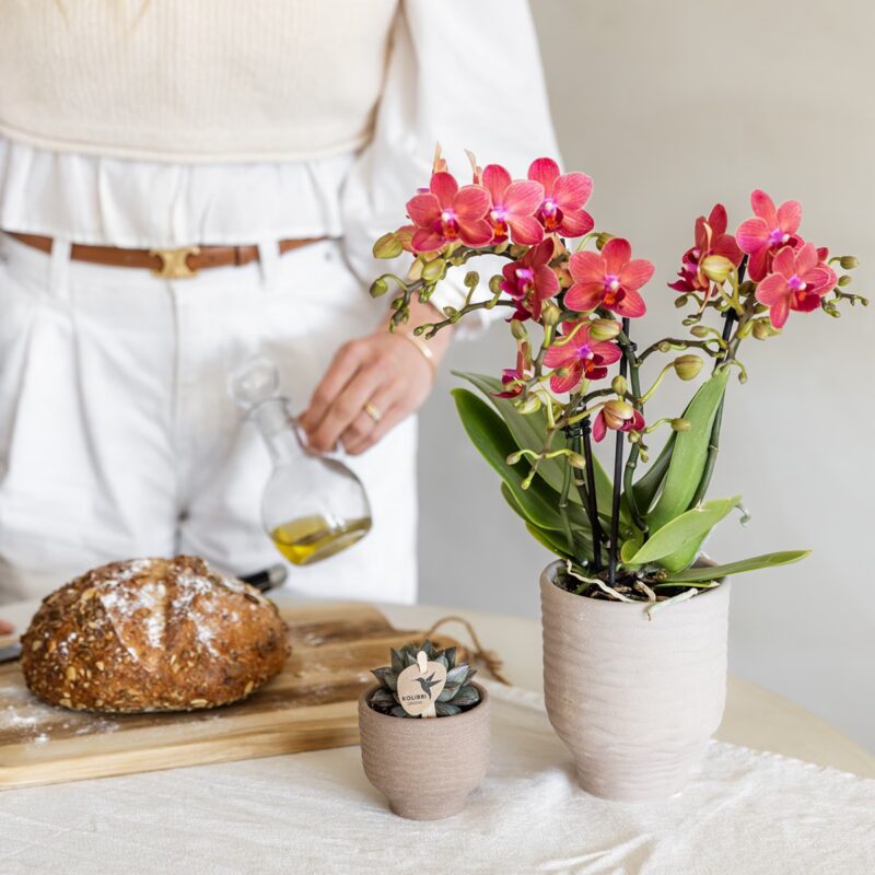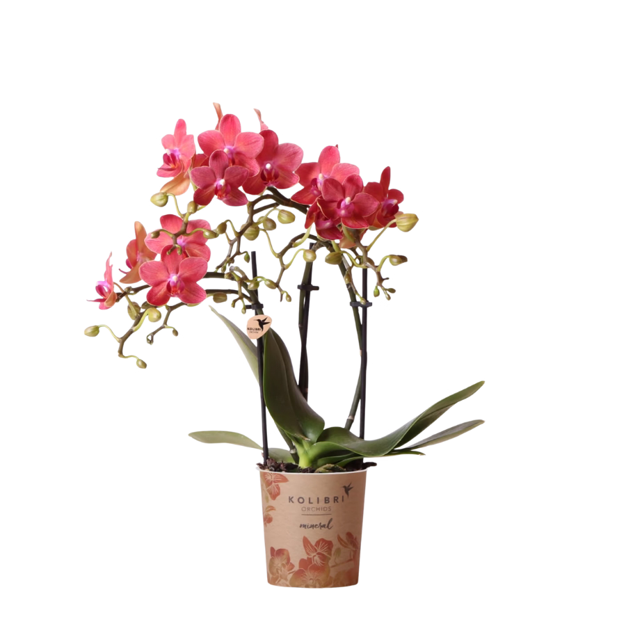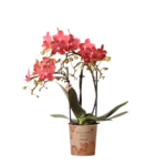 De mineral orchidee Congo is met haar rode kleur een ware schoonheid in ieder interieur. De orchidee heeft vele kleine rode bloemetjes, dit wordt ook wel multiflora genoemd. De rode orchidee zonder sierpot heeft een potmaat van 9 cm en beschikbaar over 2 of 3 stevige takken. Je kunt deze orchidee leuk op een salontafel plaatsen door haar korte lengte van ongeveer 25/35cm. De rode kleur van de Congo orchidee past goed bij minimalistisch of etnisch interieur. De kleur van deze orchidee past perfect bij onze terracotta sierpotten.