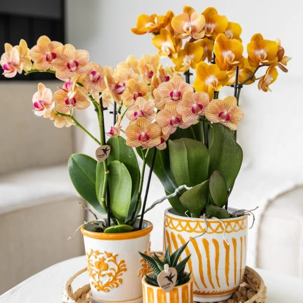 Duik de natuur in met deze prachtig oranje gekleurde orchidee. Deze Phalaenopsis Orchidee is een echte aandachtstrekker bij jou thuis! Heb jij al een mooie kleurrijke sierpot thuis? Vul deze dan met een prachtige oranje Phalaenopsis Orchidee met 2 of 3 takken. Deze orchidee orchidee herken je aan haar vele oranje bloemen, dit wordt ook wel multiflora genoemd. De oranje orchidee zonder sierpot heeft een potmaat van 9cm en beschikbaar over 2 of 3 stevige takken. De orchidee geeft een natuurlijk beeld af door de oranje kleurige bloem. Met deze orchidee kom je thuis helemaal tot rust.