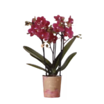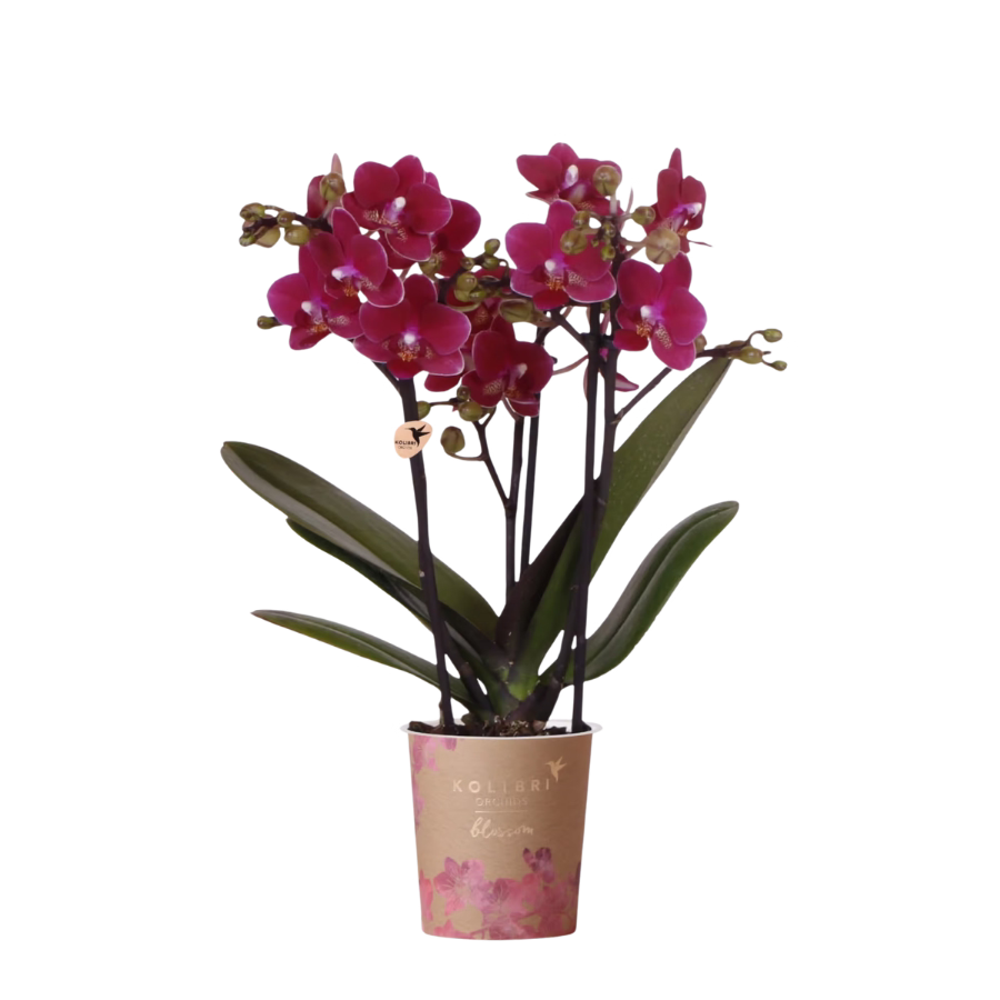 De Kolibri Orchids Chamonix heeft een krachtige en stijlvolle uitstraling dankzij haar dieppaarse tot bordeauxrode bloemen. De warme kleur geeft direct een chique en sfeervol accent aan je interieur. Door de rijke vertakking met veel zijtakken en knoppen blijft de plant lang vol en bloeiend.