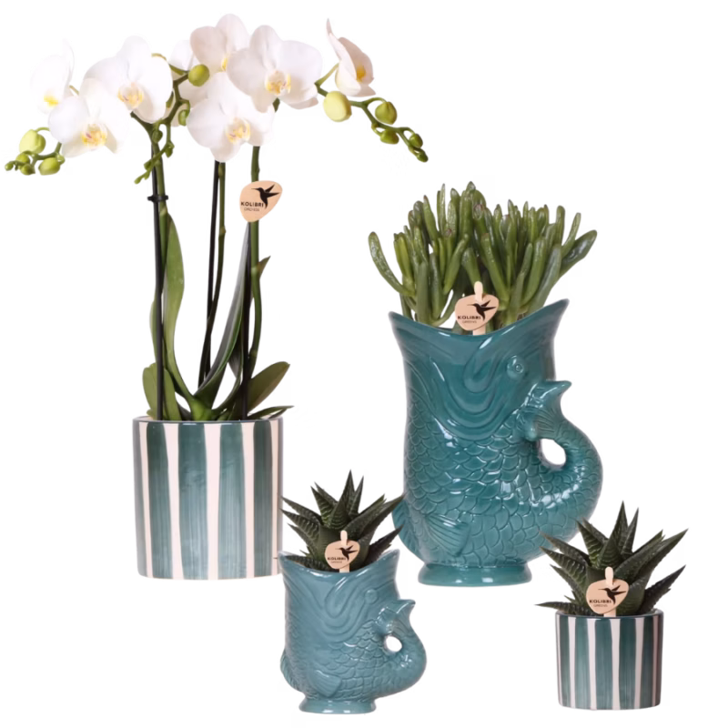 We zijn helemaal verliefd op deze combinatie: onze vrolijke Fish potten samen met de Painted Stripe potten in het groen. Ze matchen perfect en brengen meteen sfeer in huis!