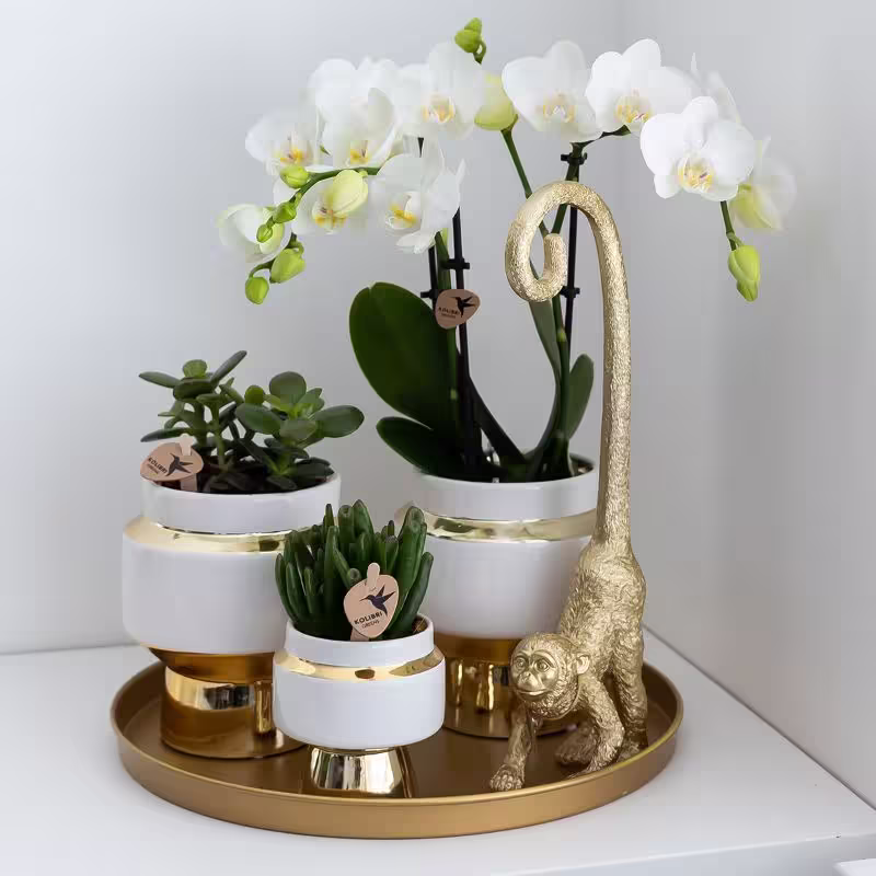 Naast het feit dat dienbladen normaal gesproken erg functioneel zijn bewijst dit gouden dienblad dat je ze ook erg goed kunt gebruiken als woonaccessoire. Het dienblad heeft door de gouden kleur een luxe uitstraling. Het dienblad heeft een diameter van 30cm. Hij is multifunctioneel, zo kun je hem gebruiken om de koffie mee rond te brengen maar nóg leuker, om je planten set mee aan te kleden. Zet je planten eens op een dienblad en je zult verrast zijn van het effect. Door een kleine toevoeging kun je je planten al een heel ander beeld geven. Daarnaast kun je hem overal plaatsen waar jij maar wilt, op de salontafel, op de eettafel of op het dressoir.