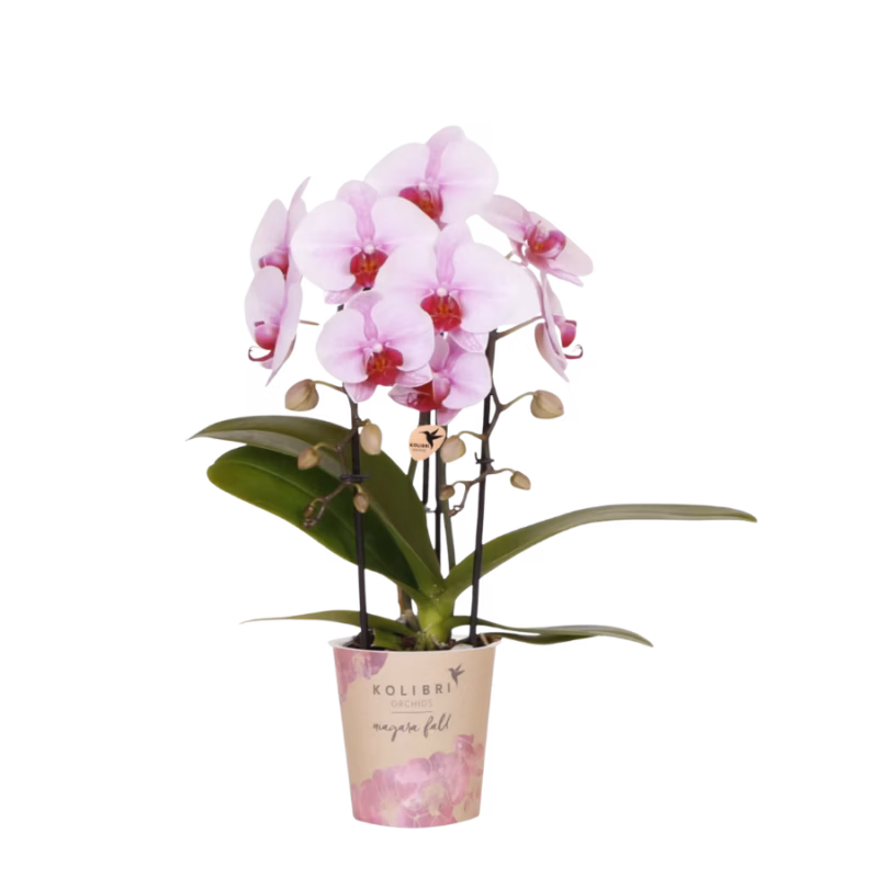 De Niagara Fall orchidee is een ware schoonheid in ieder interieur. Door de grote bloemen die de Niagara Fall orchidee aan haar takken laat groeien krijgt de plant en enorme luxe uitstraling. De plant heeft ook door haar grote bloemen een langere houdbaarheid bij goede omstandigheden. Ben je op zoek naar een cadeau voor een vriend of geliefde dan zit je met de Niagara Fall orchidee altijd goed. Door de zachtroze bloemen die aan de plant groeien past ze eigenlijk in elk interieur. De Phalaenopsis orchidee heeft een potmaat van 9cm en wordt ongeveer 35 tot 40 cm hoog.