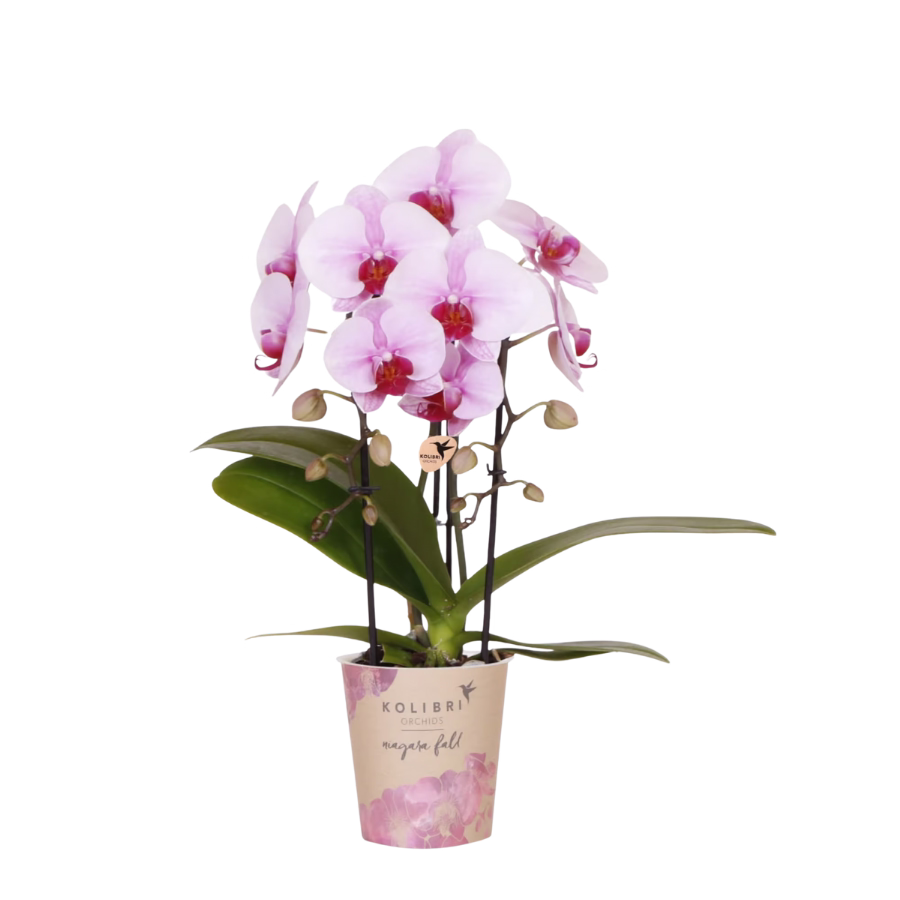De Niagara Fall orchidee is een ware schoonheid in ieder interieur. Door de grote bloemen die de Niagara Fall orchidee aan haar takken laat groeien krijgt de plant en enorme luxe uitstraling. De plant heeft ook door haar grote bloemen een langere houdbaarheid bij goede omstandigheden. Ben je op zoek naar een cadeau voor een vriend of geliefde dan zit je met de Niagara Fall orchidee altijd goed. Door de zachtroze bloemen die aan de plant groeien past ze eigenlijk in elk interieur. De Phalaenopsis orchidee heeft een potmaat van 9cm en wordt ongeveer 35 tot 40 cm hoog.