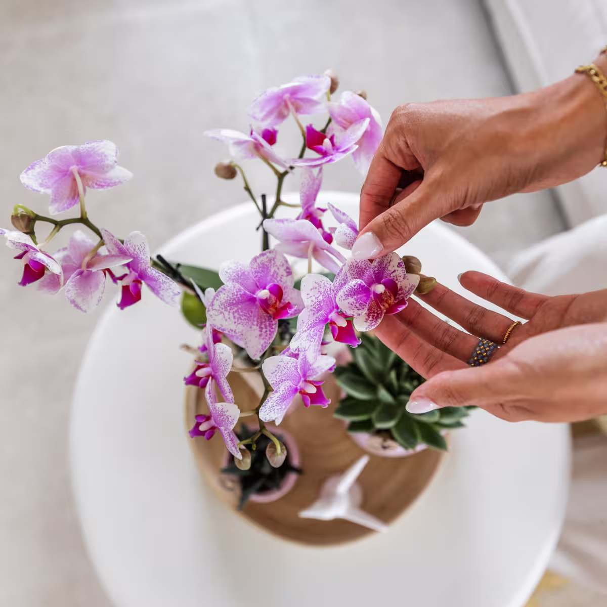 *De orchideee wordt geleverd met 2 of 3 stevige takken, afhankelijk van de actuele beschikbaarheid. Omdat we met levende producten werken, kunnen er kleine variaties zijn in het aantal takken of bloemen.