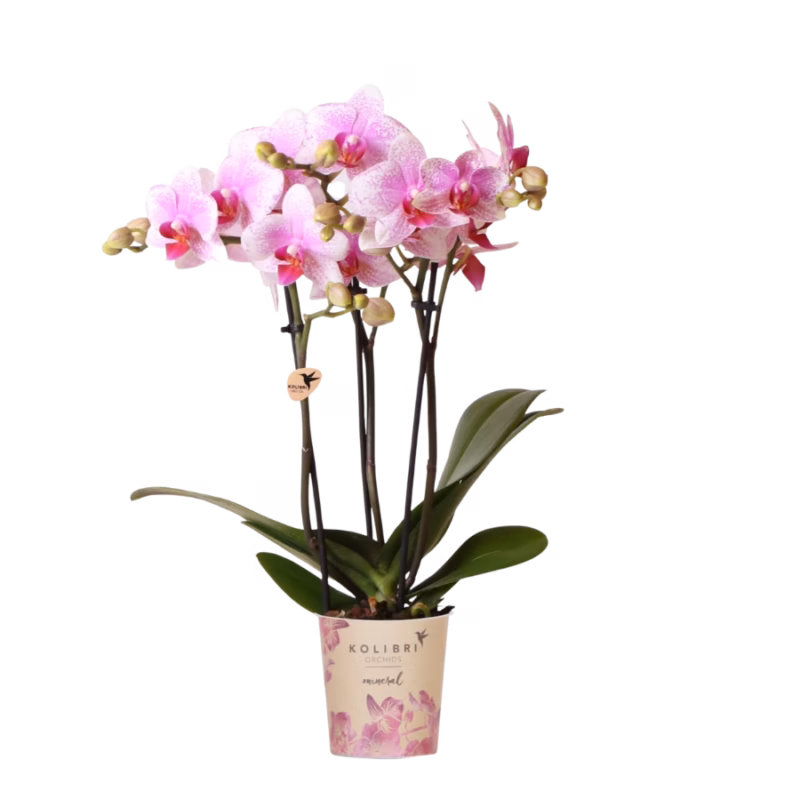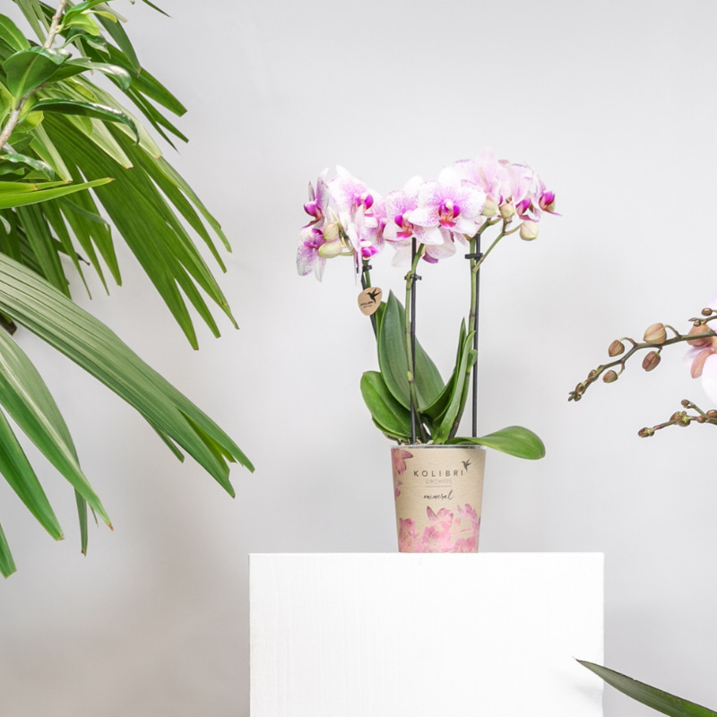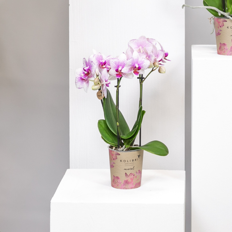 Voeg kleur aan je huiskamer toe met deze roze orchidee. Deze Phalaenopsis Orchidee is een echte aandachtstrekker bij jou thuis! Heb jij al een mooie kleurrijke sierpot thuis? Vul deze sierpot dan met een prachtige roze Phalaenopsis Orchidee met 2 of 3 takken. Deze orchidee herken je aan haar vele roze bloemen, dit wordt ook wel multiflora genoemd. De roze orchidee zonder sierpot heeft een potmaat van 9cm en beschikbaar over 2 of 3 stevige takken. De roze orchidee geeft warmte en kleur in jouw interieur. Door de eenvoudige en zachte kleur is hij gegarandeerd toepasbaar in elk interieur.