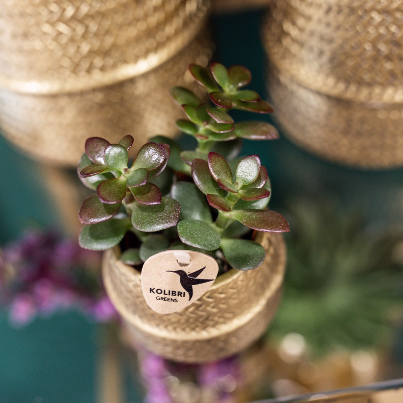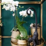 Groovy met een gouden touch! Dat is de orchideeënset met witte orchidee Amabilis en groene plant Crassula Ovata. De witte orchidee heeft een potmaat van 9 centimeter en geeft 2 of 3 stevige takken. De groene plant heeft een potmaat van 6 centimeter. Samen staan zij in de Groove zilveren sierpotten.