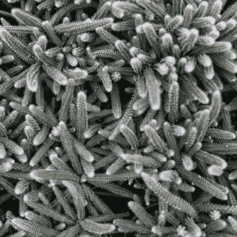 Dit Rhipsalis soort heeft wat dikkere en kortere stengels dan veel andere soorten. Daarnaast hebben ze ook witte haartjes op hun stengels zitten.
