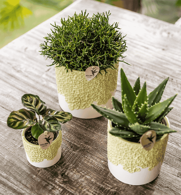 TIP | Het verpotten naar een grotere pot is niet alleen beter voor de kamerplant, het kan er namelijk ook nog eens veel leuker uit gaan zien. Zo kun je een nieuwe sierpot kiezen bij jouw Rhipsalis. Verpot jij je Rhipsalis naar een sierpot van 6, 9 of 12 centimeter? Wie weet zit er tussen onze Kolibri Home sierpotten een sierpot naar jouw smaak bij! Plaats de Rhipsalis ook eens in een hoge pot waardoor de stengels van de plant hangen. Hierdoor groeien de stengels van de Rhipsalis naar beneden, dit geeft een leuk effect.