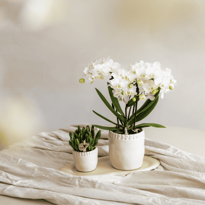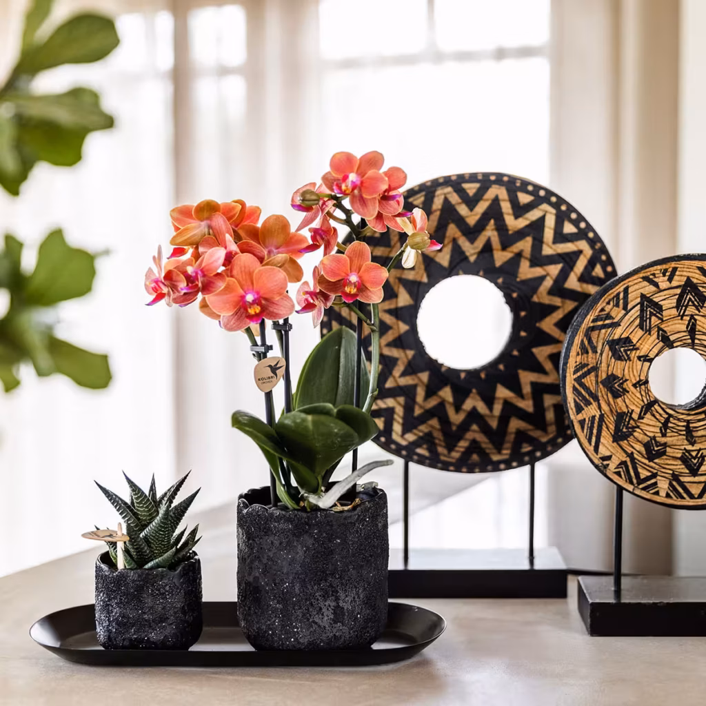 Hoe tof is deze stijlvolle duo plantenpot? Deze unieke pot combineert twee planten in één design. Aan de ene kant straalt de phalaenopsis orchidee ‘Vienna’...