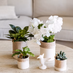 Planten spelen een subtiele, maar belangrijke rol. Ze brengen leven zonder te overheersen. Een orchidee voegt verfijning toe met haar pure uitstraling. Geen uitbundigheid, maar een stille schoonheid die je elke dag opnieuw waardeert.