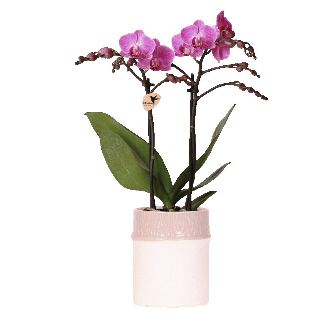 Roze orchidee Vienna en succulent in Tube sierpot | wit